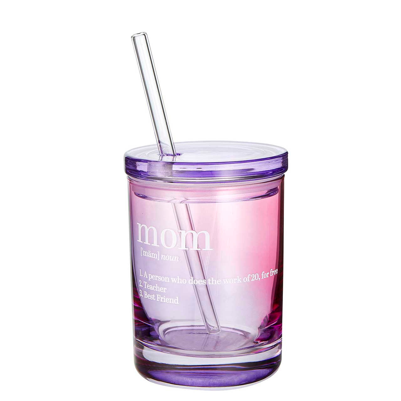 Mom Glass with Lid and Straw